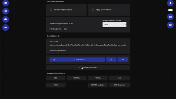 *Data Verification: Each editor’s output was converted to JSON and re-evaluated in TimeBolt’s waveform timeline to ensure all silence and filler detections were measured accurately. Each tool’s JSON export was re-imported into TimeBolt’s reverse timeline to verify leftover waste time.